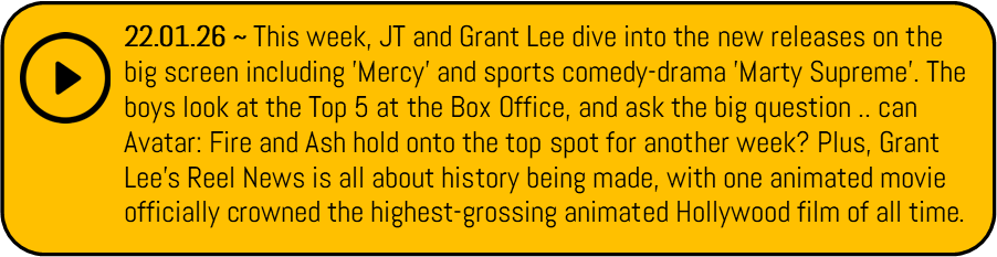 JT and Mr Lee talk all things movies, from new releases to classic movies. Hear what’s been going on in the movies.